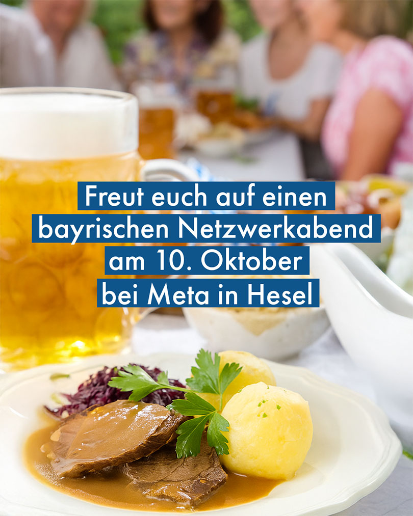 Wir laden herzlich zu unserem Netzwerkabend mit bayrischem Buffet ein, der im Meta in Hesel bei unserer Netzwerkerin Sigrid Saathoff stattfindet.